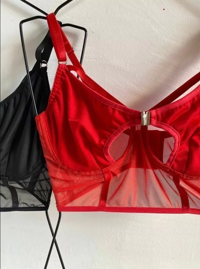 Bustier de tul combinado con lycra. Tiene aro, breteles regulables , gancho en parte delantera y también se prende atrás . Es un fuego para completar looks!