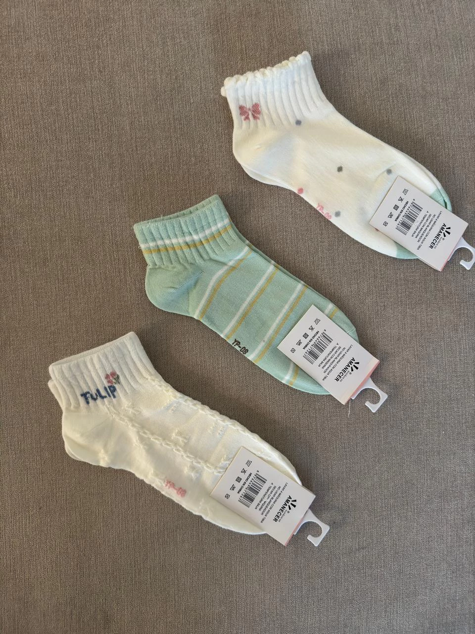El pack incluye 3 medias soquete talle único, abarcan de 35 a 39.
